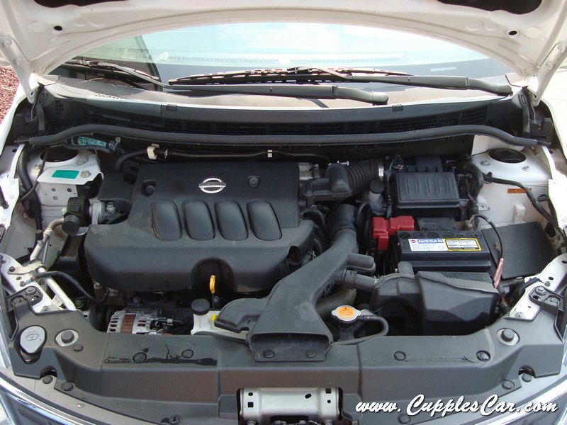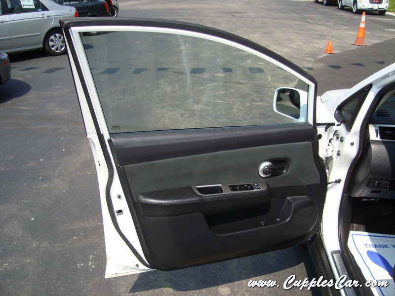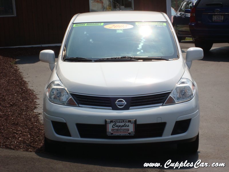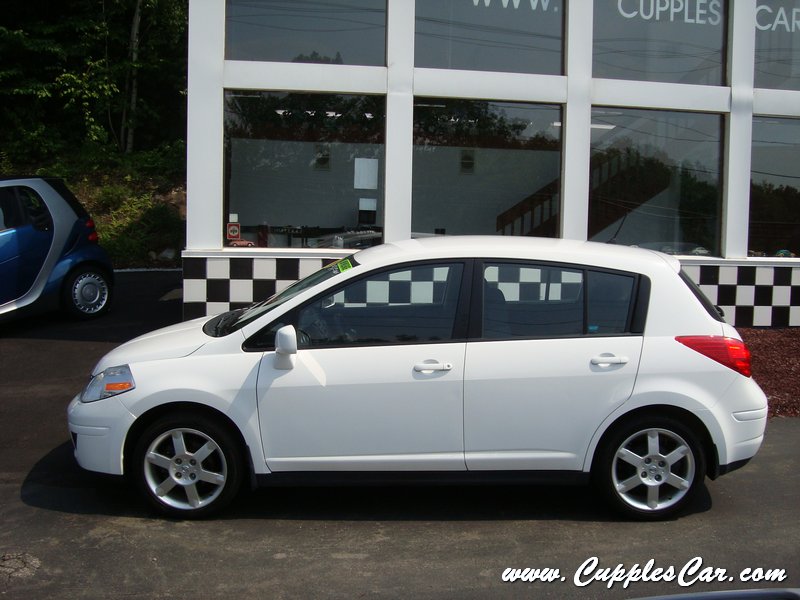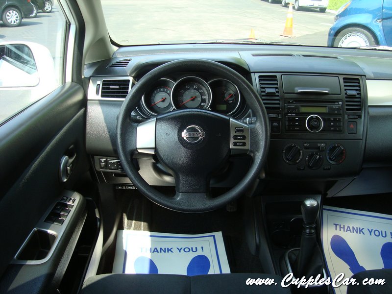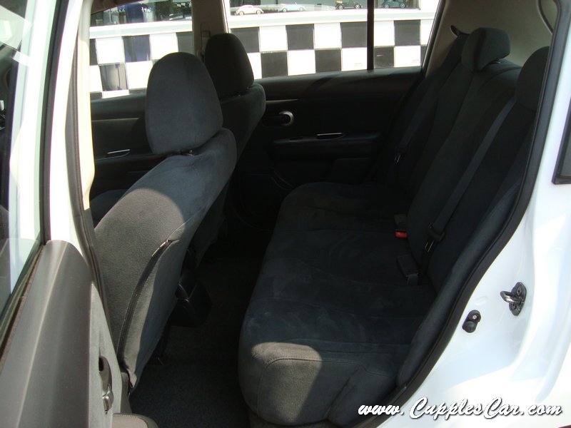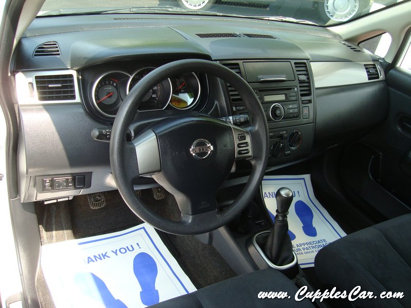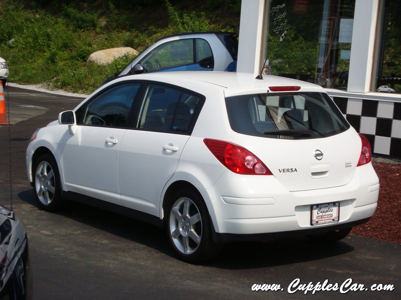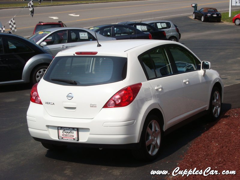 Sharp "Cloud White" Nissan Versa Hatchback with Black cloth Interior. 31MPG